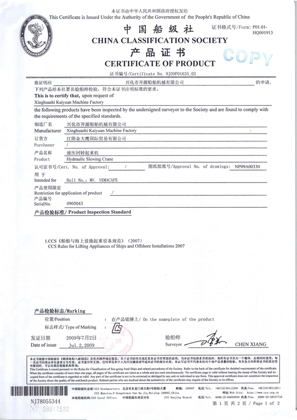 Copyright by 2009 開源重工興化無限公司 ALL Rights Reserved